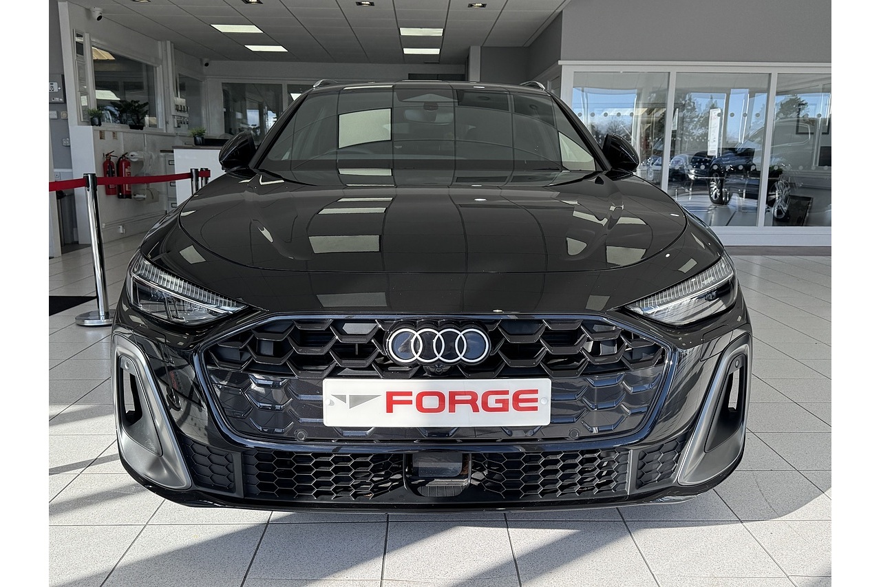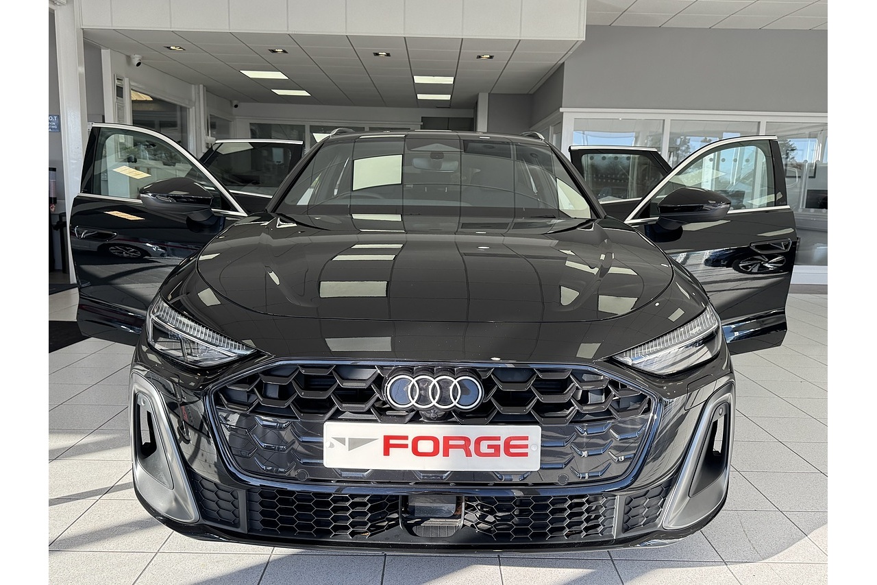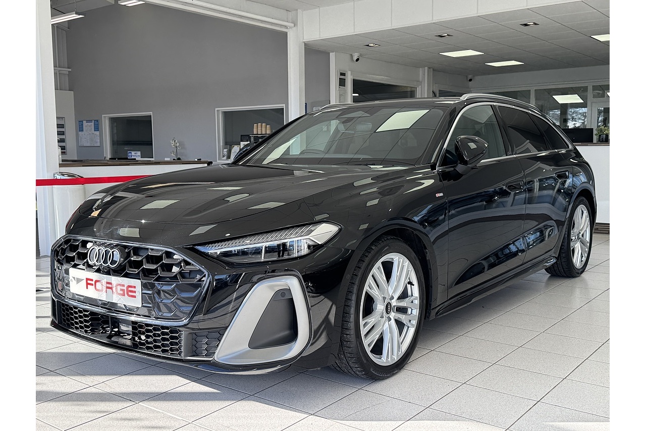 Here at Forge Garage we have available this stunning 2025 New Model Audi A5 Avant 2.0 TDI S Line Quattro 204 PS finished in Mythos black metallic with 19" x 8.0J '5-twin-Y-spoke' design alloy wheels. The new A5 Avant is a refined and versatile premium estate that pairs elegant design with capable performance. Its 2.0-litre TDI diesel engine produces 204 PS and robust torque, delivering strong, efficient acceleration and smooth power delivery across a wide rev range. The S Tronic dual-clutch transmission offers quick, crisp gear changes, while Audi’s quattro all-wheel-drive system enhances traction and stability in all conditions. The S line specification adds sporty styling cues, including distinctive bumpers, larger wheels, and a lowered suspension, giving the Avant a dynamic stance without compromising comfort. Inside, the cabin combines high-quality materials with intuitive technology and generous cargo space, making the A5 Avant equally suited to family life, long journeys, and everyday commuting with a balance of practicality and premium appeal.