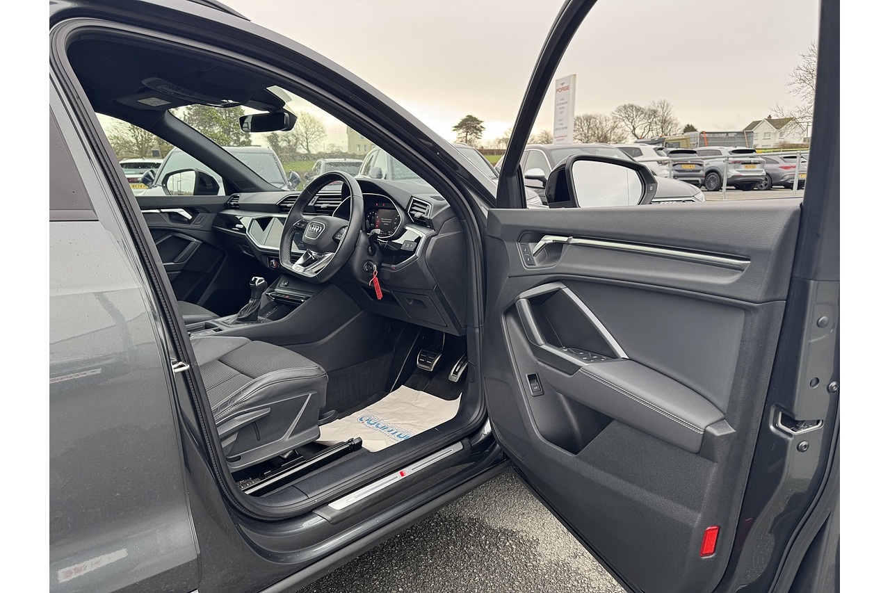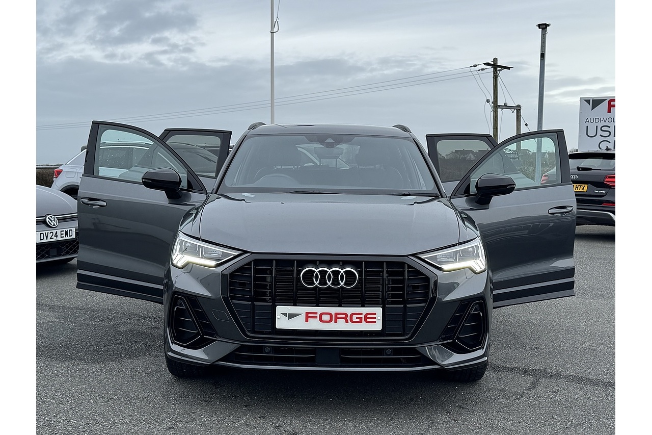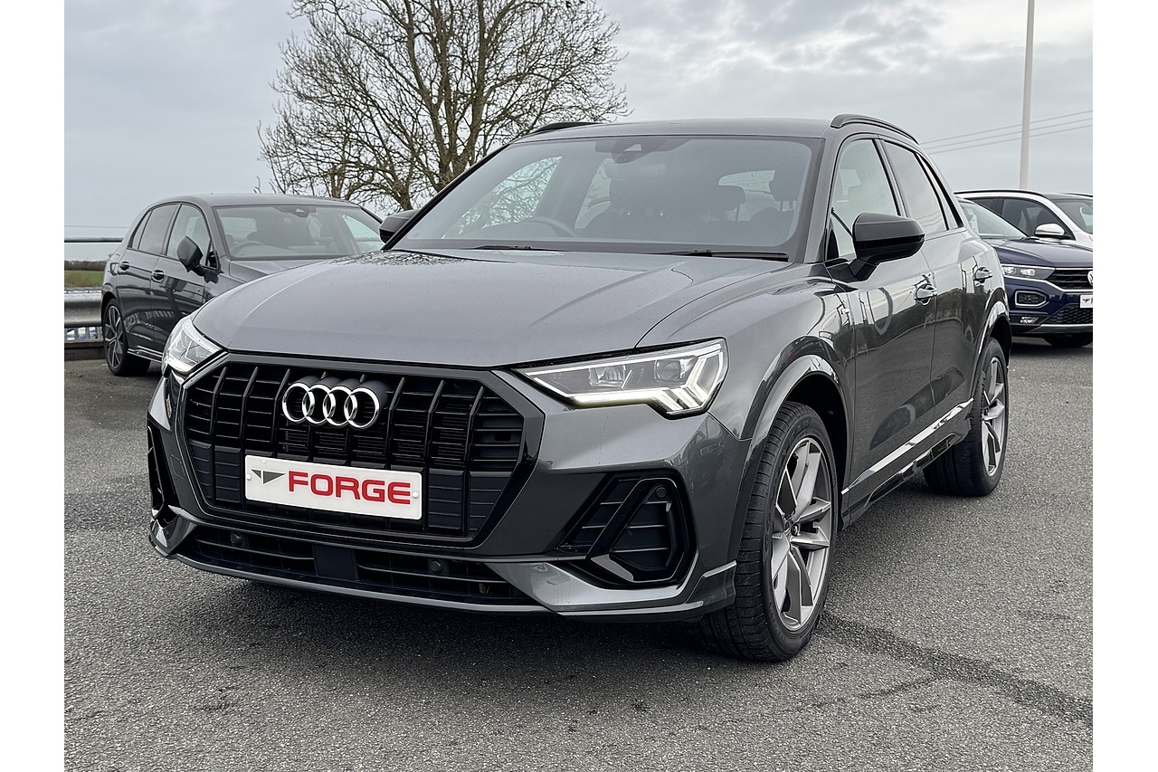 Here at Forge Garage we have this stunning Daytona Grey 2023 Audi Q3 Black Edition with only 18,169 Miles on the clock. This 2023 Audi Q3 Black Edition is a compact premium SUV that blends sporty performance with luxury and everyday practicality. Powered by a 1.5-litre turbocharged petrol engine producing 150 PS, it features Audi’s Cylinder on Demand (CoD) technology to improve efficiency by deactivating cylinders when full power isn’t needed. Paired with a smooth S Tronic dual-clutch automatic gearbox, the Q3 delivers responsive acceleration and confident motorway cruising. The Black Edition trim enhances its visual appeal with gloss black exterior details, larger alloy wheels, and distinctive styling cues, while the interior offers high-quality materials, advanced infotainment, and a comfortable driving position typical of Audi’s refinement. It’s well-suited for drivers seeking a mix of premium feel, practicality, and spirited everyday driving.