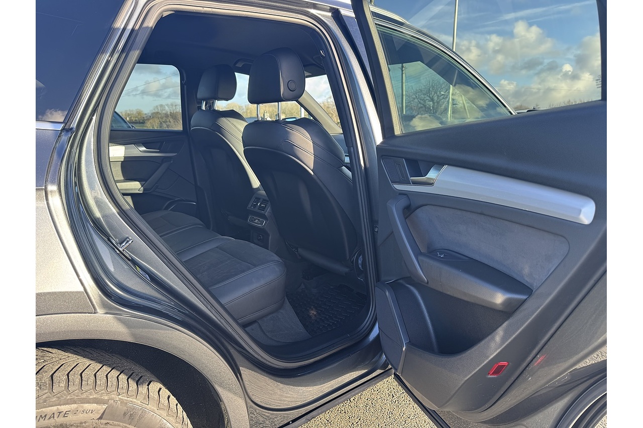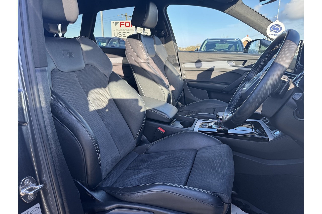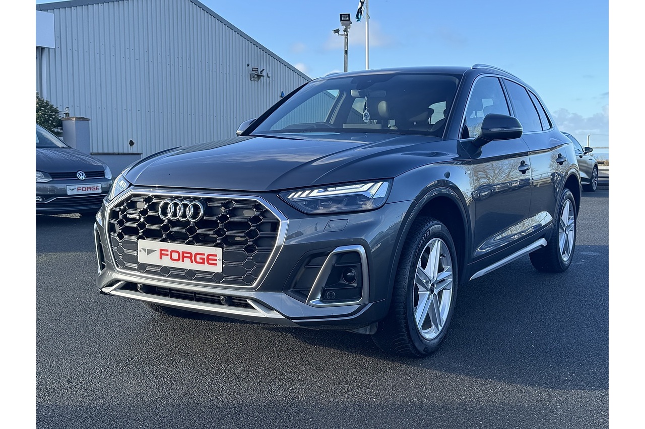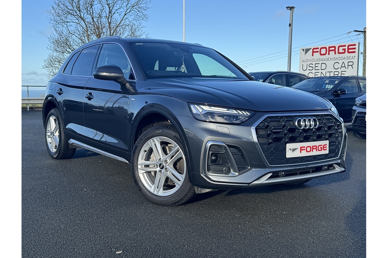 Here at Forge Garage we have this stunning Daytona Grey 2021 Audi Q5 TFSI S-Line with 40,723 Miles on the clock. This 2021 Audi Q5 2.0 TFSI S line is a premium midsize SUV that blends sporty performance with luxury and versatility. Its 2.0-litre turbocharged petrol engine delivers 265 PS, paired with a smooth S tronic dual-clutch automatic transmission and quattro all-wheel drive, providing responsive acceleration, confident handling, and secure traction in a variety of driving conditions. The S line trim adds dynamic styling touches, including sportier bumpers, distinctive alloy wheels, and a more driver-focused interior, enhancing both aesthetics and driving experience. Inside, the cabin is spacious and refined, with high-quality materials, advanced infotainment, and comfortable seating that make long journeys and daily commutes equally enjoyable. With its combination of power, handling, and premium features, the 2021 Q5 2.0 TFSI S line offers a sophisticated and engaging SUV experience.