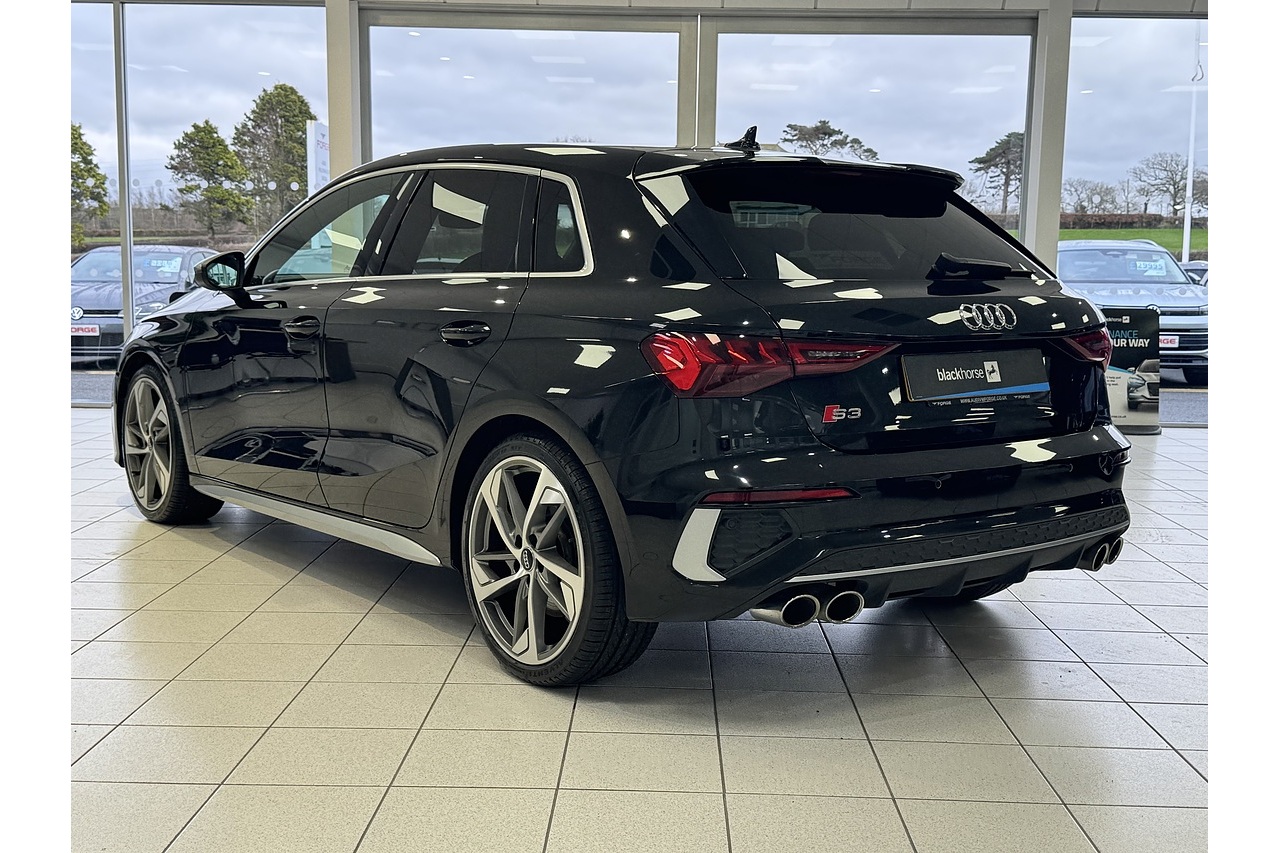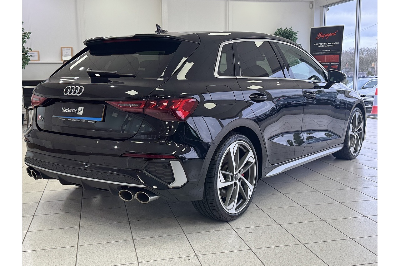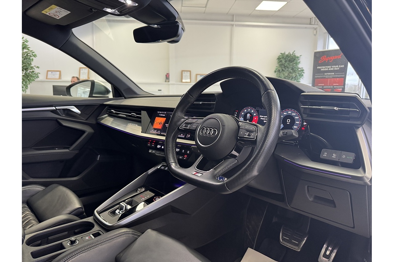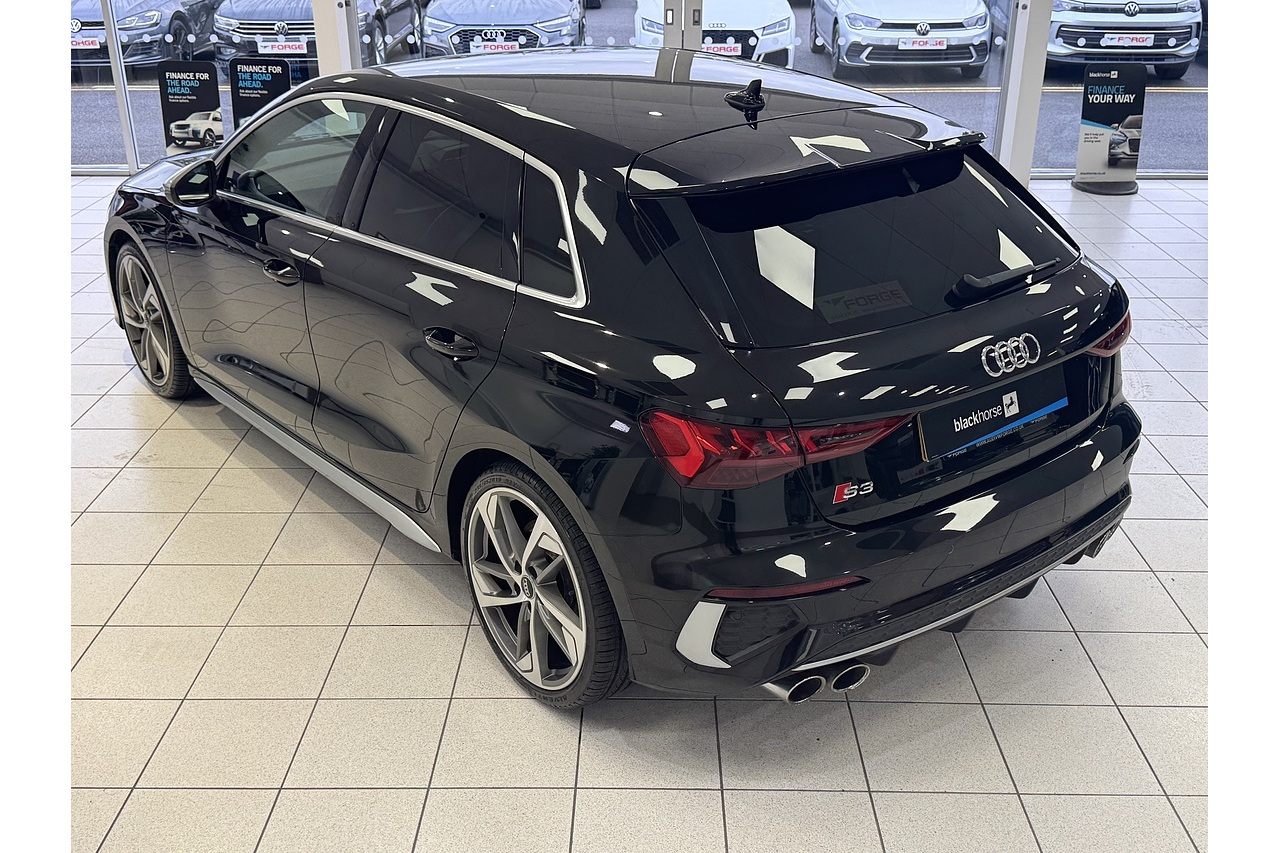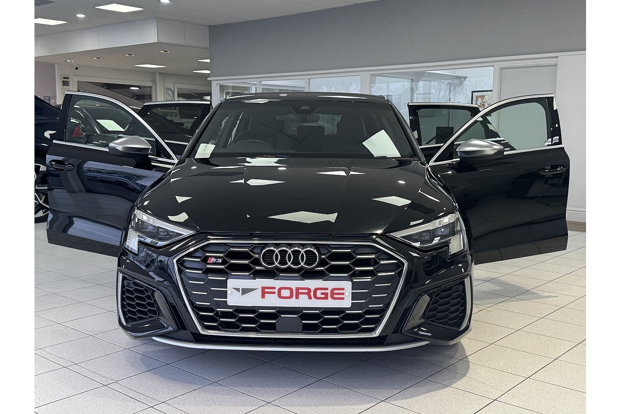 Here at Forge Garage we have this stunning Mythos Black 2020 Audi S3 TFSI S-Tronic Quattro with only 36,000 Miles. This 2020 Audi S3 2.0 TFSI S Tronic quattro 310 PS is a high-performance compact hatch that blends daily usability with thrilling dynamics. Powered by a turbocharged 2.0-litre four-cylinder petrol engine producing 310 PS and strong torque, it accelerates briskly and delivers an engaging driving experience. The S Tronic dual-clutch automatic gearbox provides swift, seamless shifts, complementing the quattro all-wheel-drive system that ensures confident traction in varied conditions. Inside, the Sportback offers a well-crafted cabin with premium materials, supportive seats, and up-to-date infotainment, making it comfortable for both spirited drives and everyday commuting. With sharp steering, agile handling, and a balanced ride, the 2020 S3 stands out in the hot-hatch segment as a practical yet exhilarating choice for enthusiasts who want performance without sacrificing refinement.