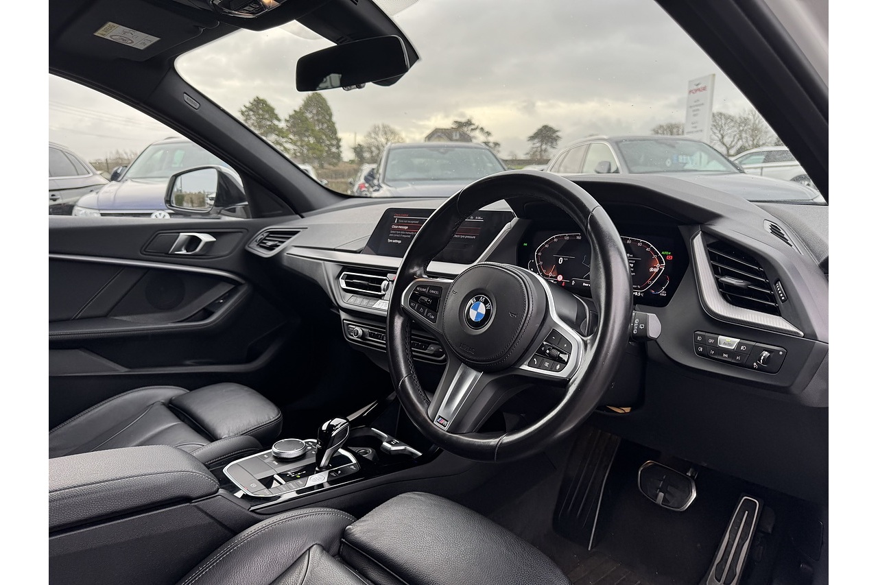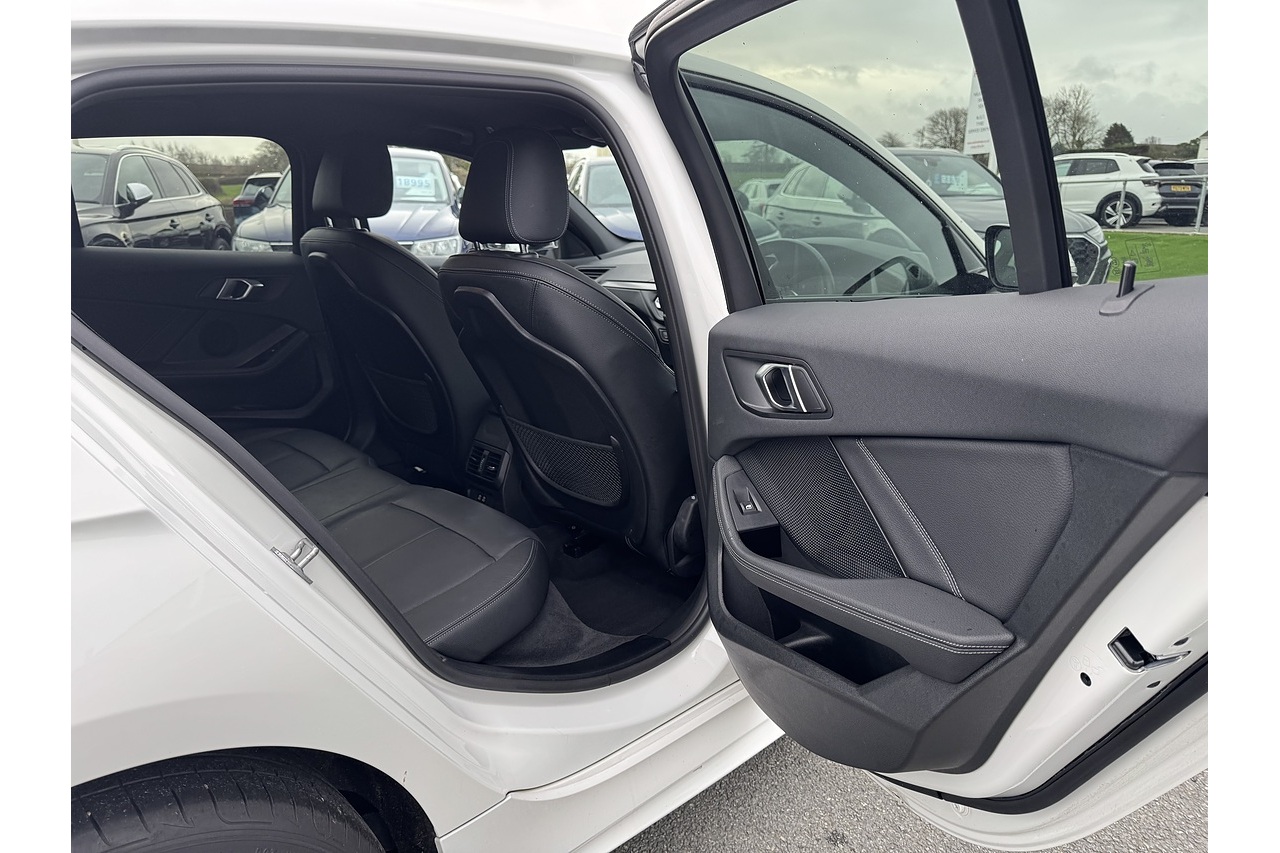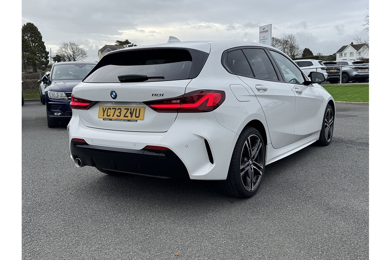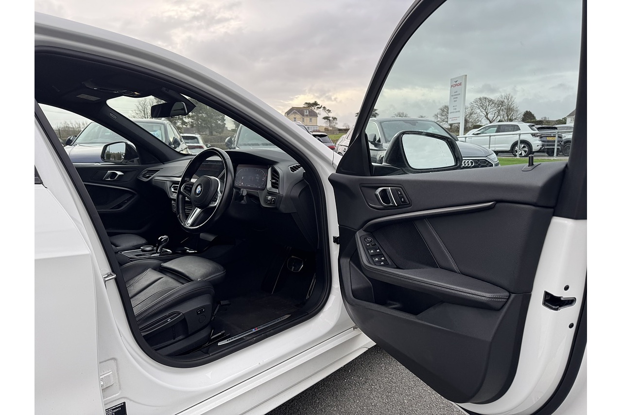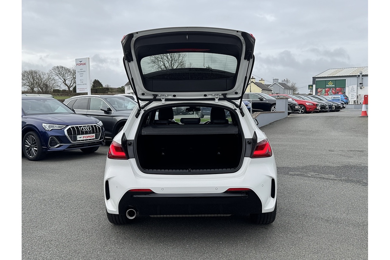 Here at Forge Garage we have this stunning Alpine White BMW 1 Series 118i M Sport with only 18,599 Miles on the clock. This 2023 BMW 1 Series 1.5 118i M Sport Hatchback with a 136 PS petrol engine and DCT (dual-clutch transmission) offers a dynamic blend of performance, style, and everyday usability. Its turbocharged 1.5-litre engine delivers lively acceleration and smooth power delivery, while the dual-clutch gearbox gives quick, seamless shifts that enhance both spirited driving and relaxed cruising. The M Sport trim adds a more athletic appearance with sportier styling cues, larger wheels, and a firm-edged suspension setup that sharpens handling without sacrificing comfort. Inside, the cabin feels modern and driver-oriented, with quality materials and intuitive tech features that make daily journeys enjoyable. Overall, this 1 Series strikes an engaging balance between agility, refinement, and practicality, making it appealing for those who want fun driving dynamics in a compact hatchback.