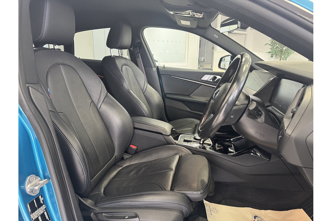 Forge are pleased to offer this Snapper Rocks Blue BMW 2 Series M Sport with only 44,985 Miles on the clock! This vehicle comes with Full service history, Sun protection glass, Snapper Rocks Blue Metallic Paint, Harman/Kardon Surround Sound Audio System, Dakota leather upholstery, Apple car play, Heated front seats and more. This 2021 BMW 2 Series M Sport is a compact luxury saloon that combines sporty design with impressive performance. Powered by a 1.5-litre three-cylinder engine, it produces 136 BHP and features a smooth, responsive 7-speed dual-clutch transmission (DCT). The M Sport trim enhances its aggressive styling with sportier exterior accents, such as a more dynamic front bumper, larger wheels, and sportier suspension. Inside, the cabin boasts premium materials and technology, ensuring both comfort and modern connectivity. This model delivers a balanced ride, blending agility with everyday usability.