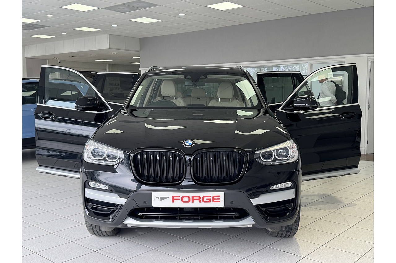 Forge Garage are pleased to offer this Black Sapphire Metallic BMW X3 with only 35,000 Miles on the clock. This 2019 BMW X3 is a premium compact SUV featuring a 2.0-litre diesel engine paired with an 8-speed automatic transmission. With 190 horsepower and impressive torque, it delivers a refined and dynamic driving experience. The xLine trim offers a robust mix of luxury and capability, with features such as high-quality interior finishes, advanced safety tech, and a spacious cabin. The X3 20d xLine also boasts excellent fuel efficiency and off-road capabilities, making it a versatile choice for both city driving and weekend adventures.