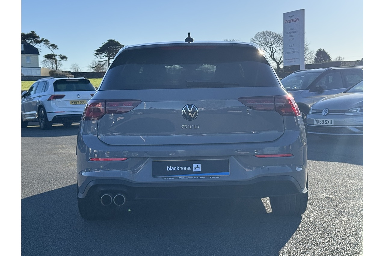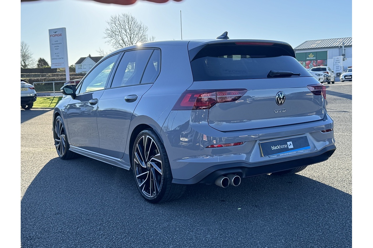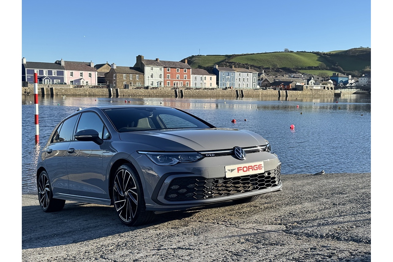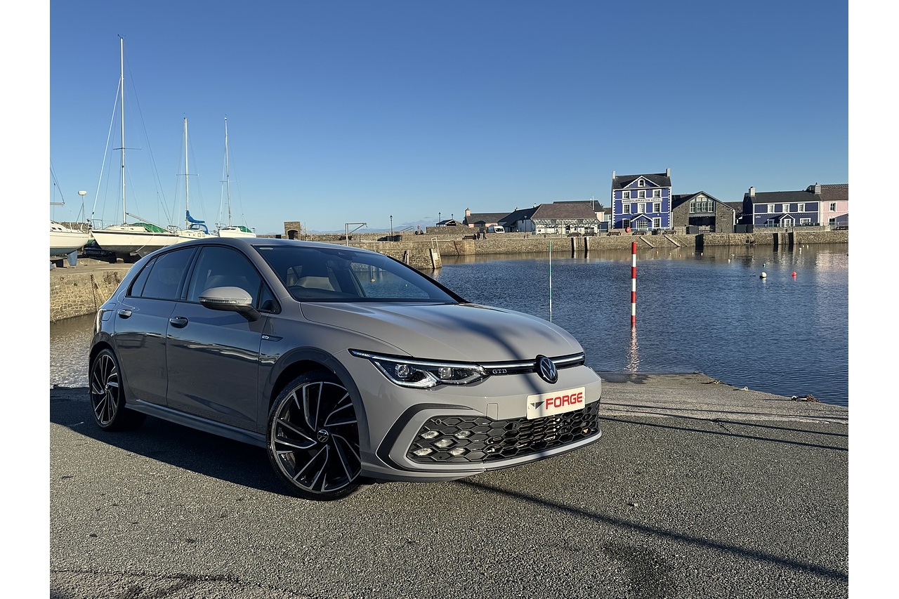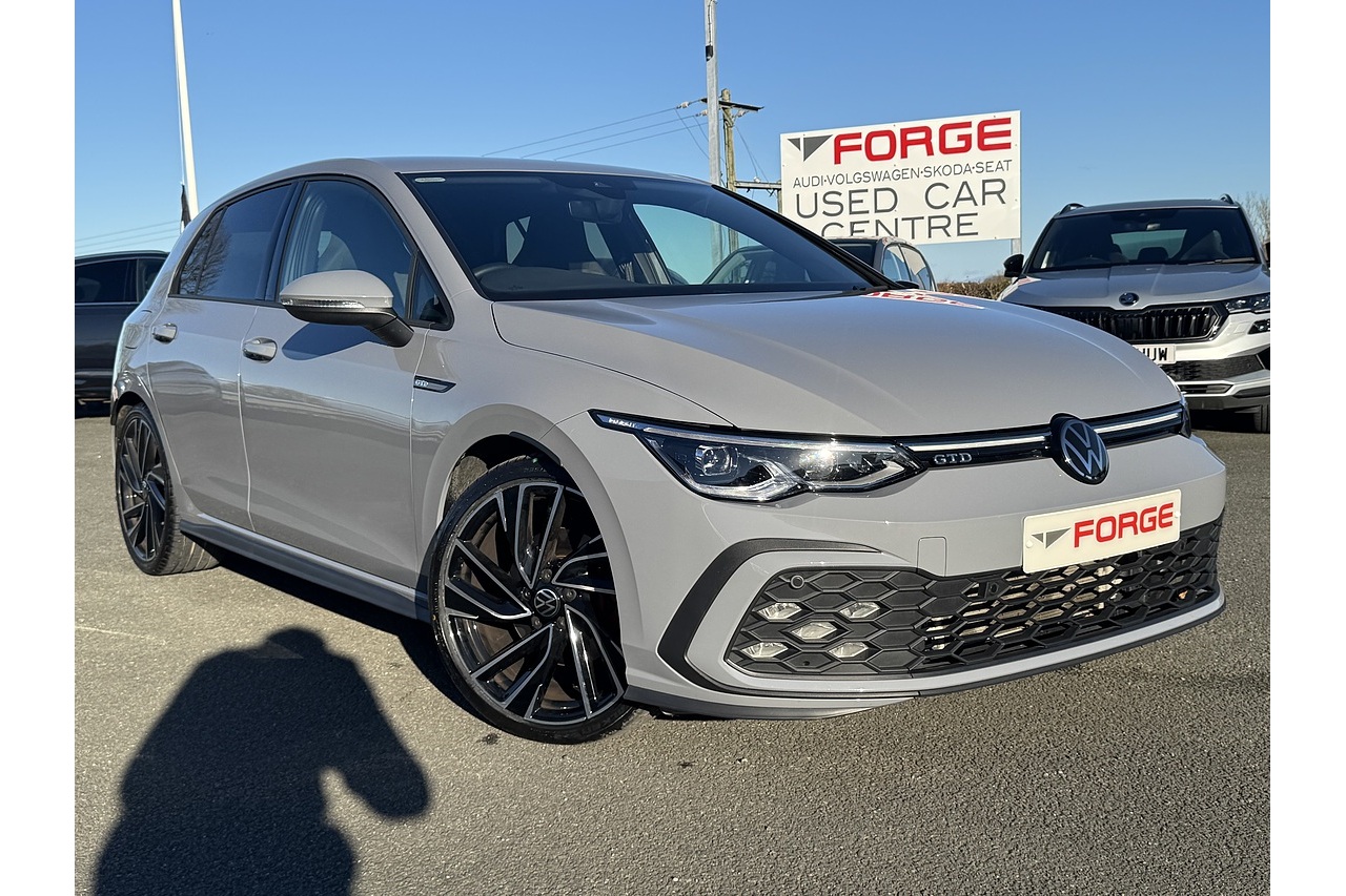 Just arrived here at Forge Garage is this stunning Moonstone Grey 2023 Volkswagen Golf GTD with only 15,513 Miles on the clock. This Volkswagen Golf GTD is a sporty yet efficient performance hatchback, powered by a 2.0-litre turbo-diesel engine producing around 200 PS and strong torque for quick, confident acceleration. Its 7-speed DSG gearbox delivers smooth, responsive shifts, while the lowered suspension and GTD-specific styling—aggressive front intakes, distinctive alloy wheels, and sporty interior touches—give it a sharp, dynamic character. Inside, the digital cockpit, supportive sports seats, and advanced driver-assistance features create a refined, modern driving environment, making the GTD both engaging on the road and practical for everyday use.