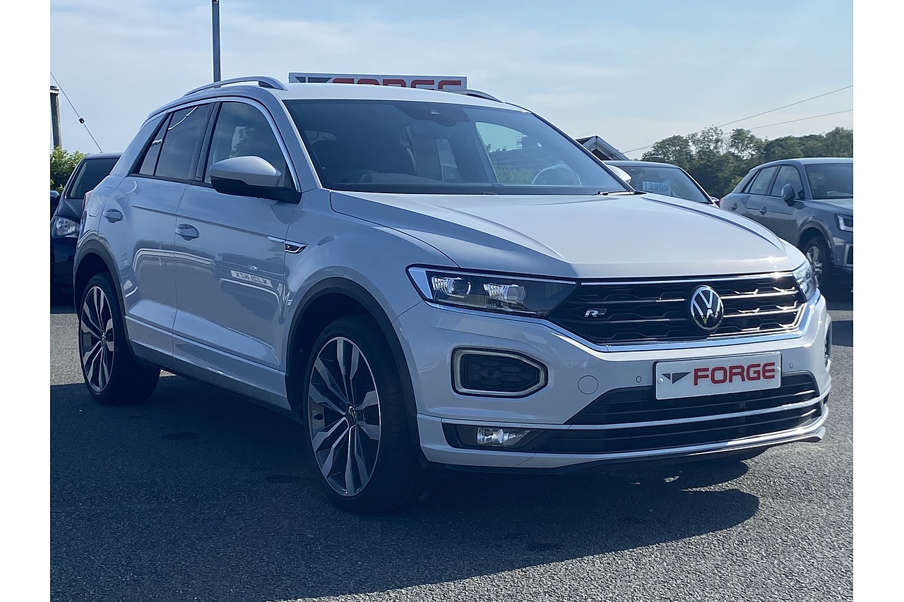 Here at Forge Garage we have this outstanding White Silver metallic 2021 Volkswagen T-Roc EVO R-Line with only 13,613 Miles on the clock. This 2021 Volkswagen T-Roc 1.5 R-Line is a stylish and dynamic compact SUV that combines sporty performance with everyday practicality. Powered by a 1.5-litre turbocharged petrol engine producing 150 PS and 250 Nm of torque, it accelerates from 0–62 mph in 8.4 seconds and reaches a top speed of 129 mph. The 7-speed DSG automatic transmission ensures smooth gear shifts, while the front-wheel-drive layout and sport suspension provide agile handling. With CO₂ emissions of 137 g/km, it offers a balanced mix of performance and efficiency. The R-Line trim enhances its sporty appeal with features like 17-inch Valencia alloy wheels, progressive steering, and a digital cockpit. Inside, the cabin boasts a modern design with soft-touch materials and a 10.25-inch digital display. The T-Roc 1.5 R-Line is an excellent choice for those seeking a compact SUV that delivers both style and substance.