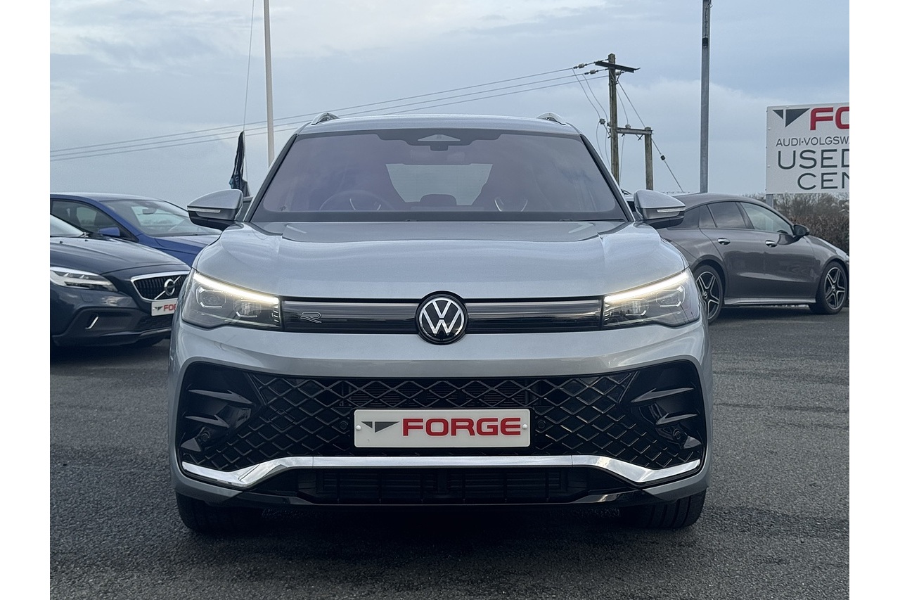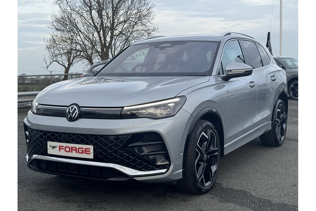 Here at Forge Garage we have this stunning 2025 Volkswagen Tiguan R-Line eTSI with only 2,900 Miles on the clock. This 2025 Volkswagen Tiguan 1.5 eTSI MHEV R-Line DSG 150 ps is a modern and efficient compact SUV that blends refined performance with advanced mild-hybrid technology. Its 1.5-litre eTSI engine paired with a smooth DSG automatic gearbox delivers responsive power, improved fuel economy, and seamless stop/start performance, making it ideal for both urban commuting and longer trips. The sporty R-Line trim adds distinctive styling cues, premium interior features, and enhanced driving dynamics, while the spacious five-door body, versatile cabin, and up-to-date tech make it a practical and attractive choice for families and daily drivers alike.