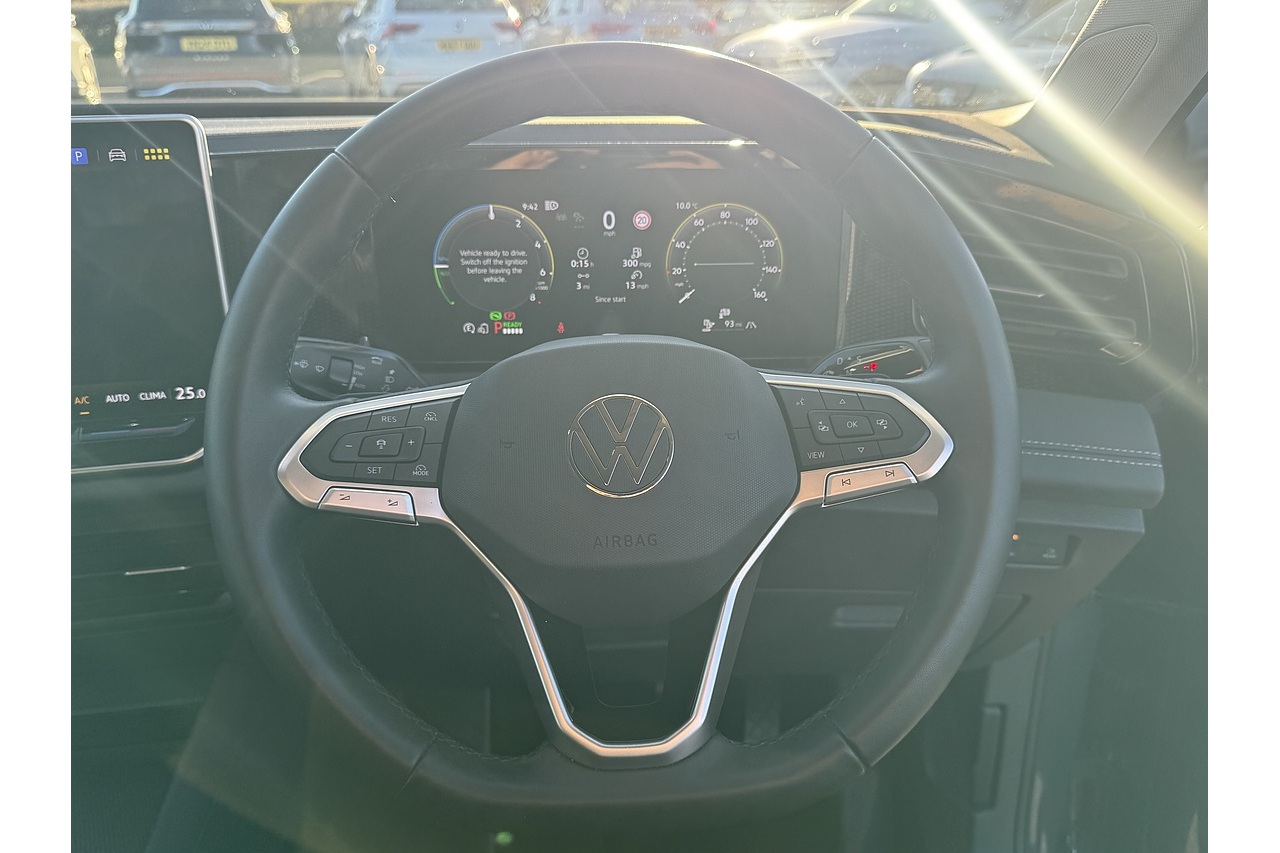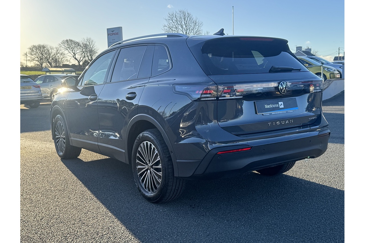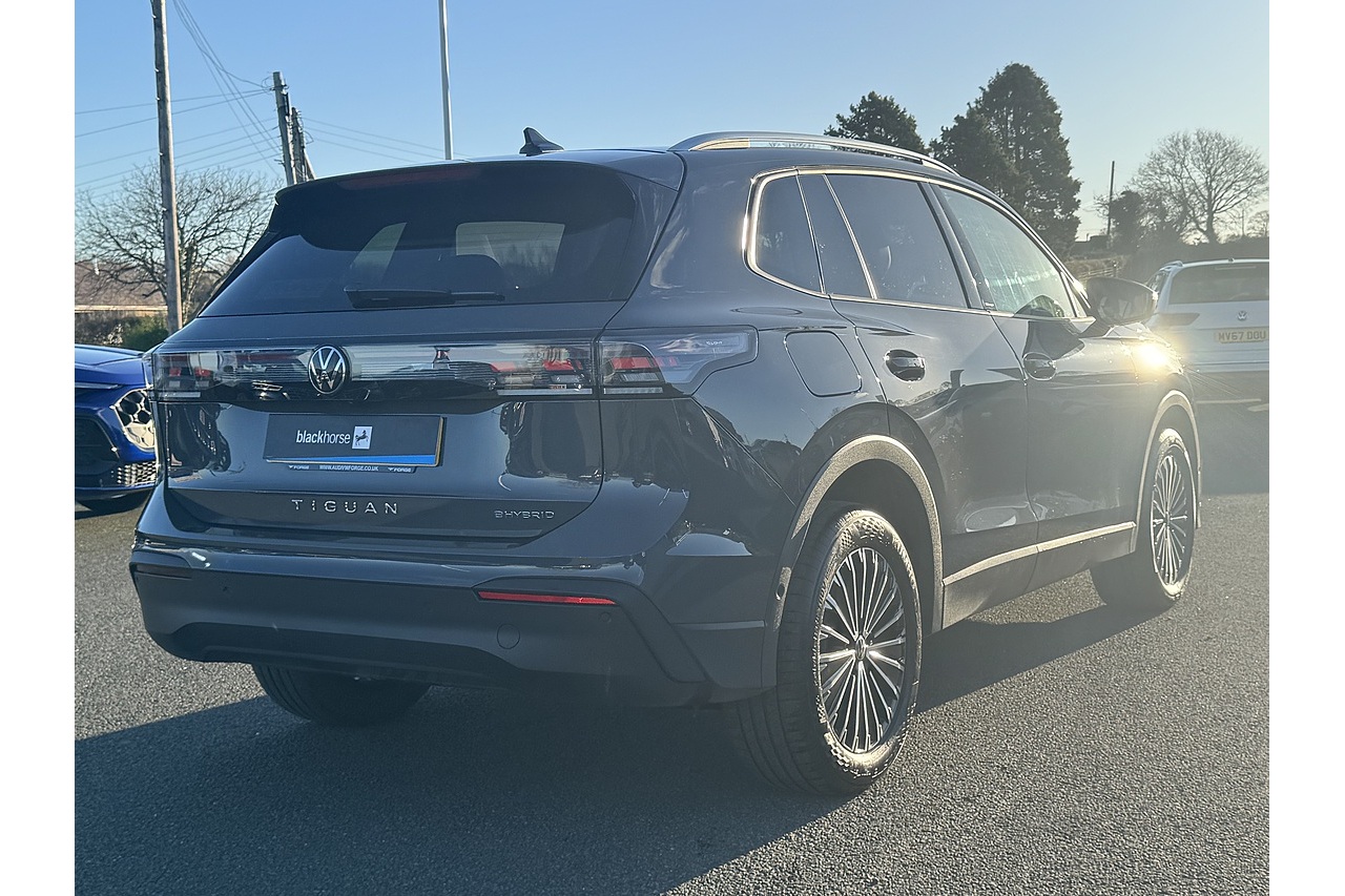 Just arrived is this stunning Dolphin Grey 2024 Volkswagen Tiguan eHybrid Match with only 12,000 Miles on the clock. This 2024 Volkswagen Tiguan TSI eHybrid Match is a smart and efficient plug-in hybrid SUV that combines a 1.5-litre turbo-petrol engine with an 85 kW electric motor for a combined output of 204 PS. It accelerates from 0-62 mph in around 8.2 seconds and can travel a meaningful distance on electric power alone. With a 19.7 kWh battery, it offers low CO₂ emissions and impressive fuel economy when driven with regular charging. The Match trim adds practical comfort features like 18″ Napoli alloy wheels, adaptive cruise control, a digital cockpit, and a roomy 490-litre boot—making it a compelling choice for eco-conscious families who still want performance and style.
